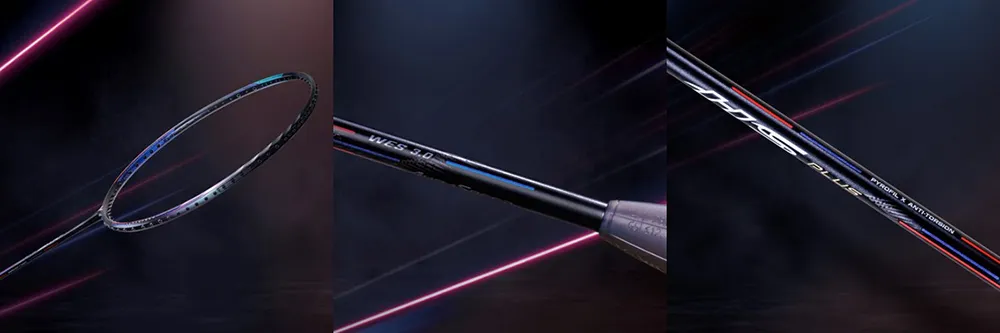 ARS-HS PLUS is designed with a black main color scheme accented by touches of red and nacreous blue textures, reminiscent of a lightning-fast ray illuminating the dark night. This low-key yet sophisticated aesthetic is complemented by the powerful technological combination of WES 3.0 and a highly anti-torsion shaft, making ARS-HS PLUS a new chapter in the AURASPEED series with its unprecedentedly fast hitting feel.