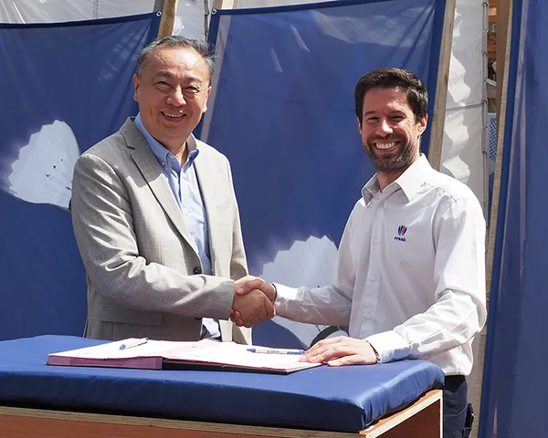 VICTOR Chairman Jeff Chen (left) and FFBaD President Yohan Penel at signing ceremony